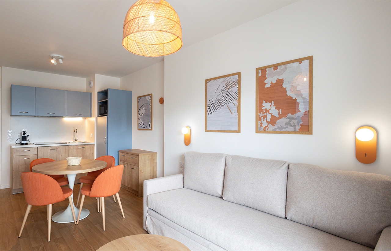 À moins d’1 km du centre de Royan, la Résidence l’Orée du Parc propose un séjour au sein d’appartements accueillant jusqu’à 6 personnes. Espaces modernes et spacieux, les logements disposent d’un extérieur aménagé pour profiter pleinement des douces températures de Royan.
