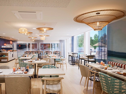 Au sein d’un espace moderne, découvrez l’espace petit déjeuner de l’Orée du Parc où vous apprécierez de prendre vos repas du matin.